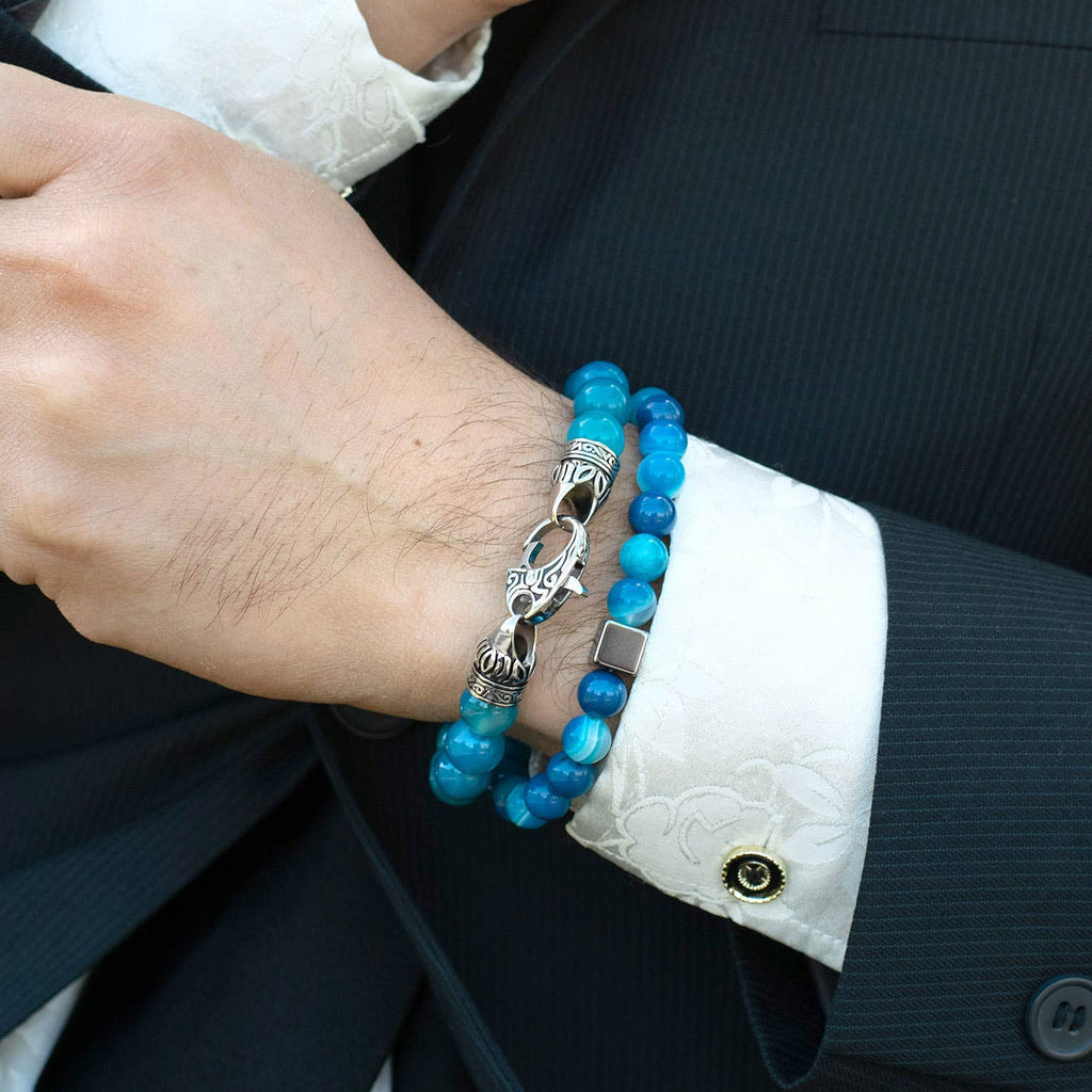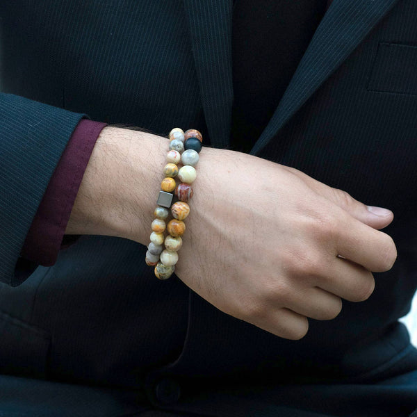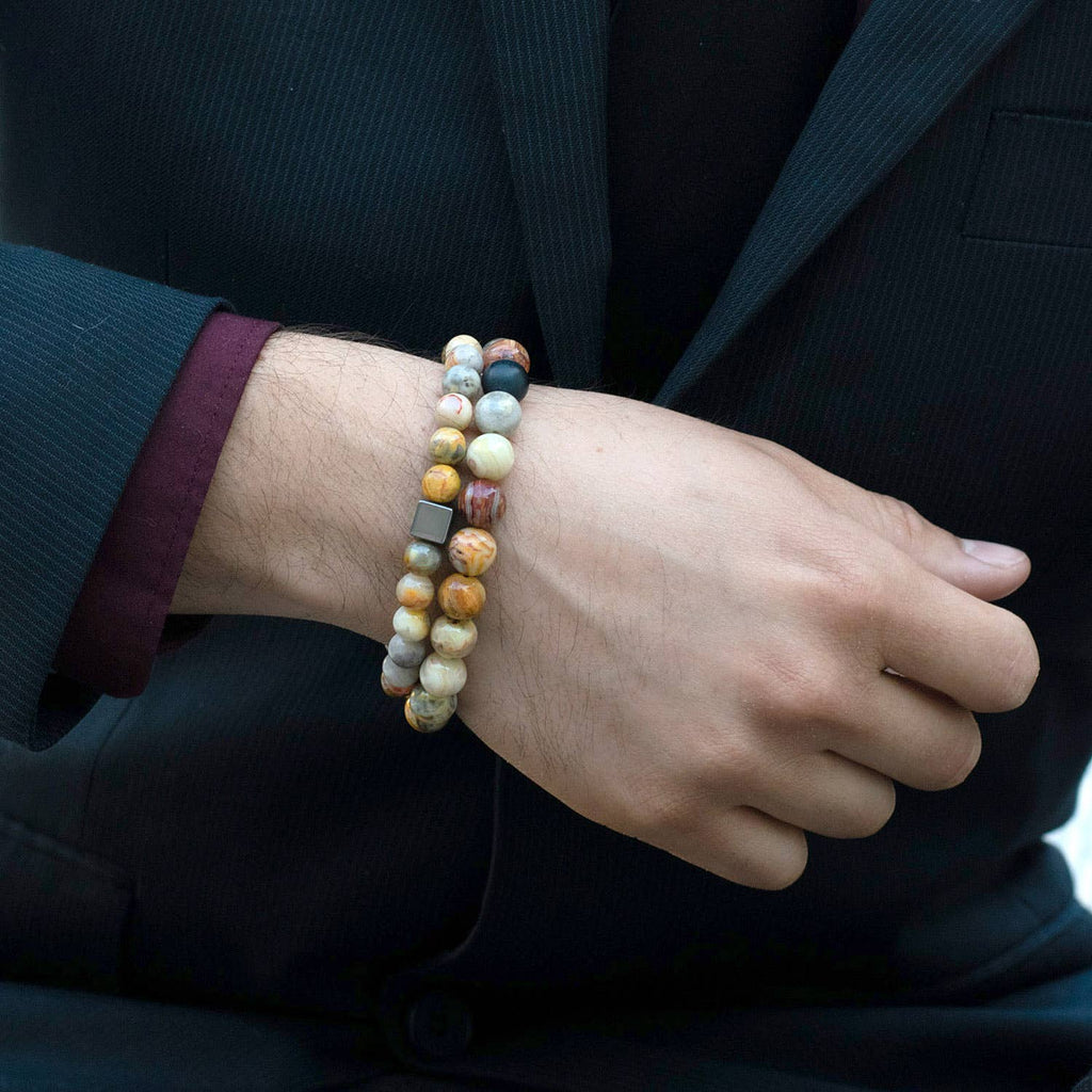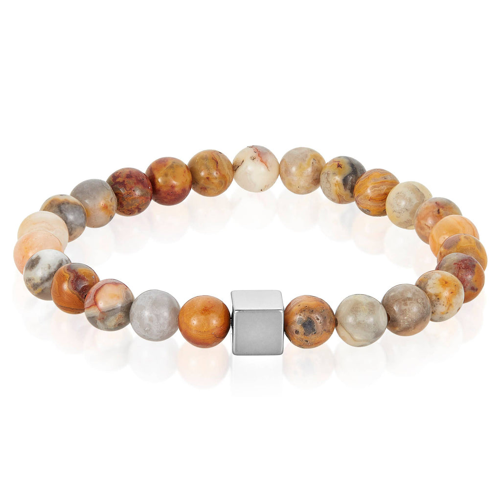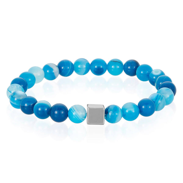 The bracelet features one cube shaped Hematite stone complimented by natural stone beads in your choice.