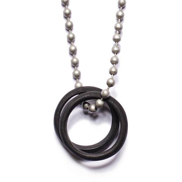 BLACK GLASS TWO RINGS NECKLACE FOR MEN