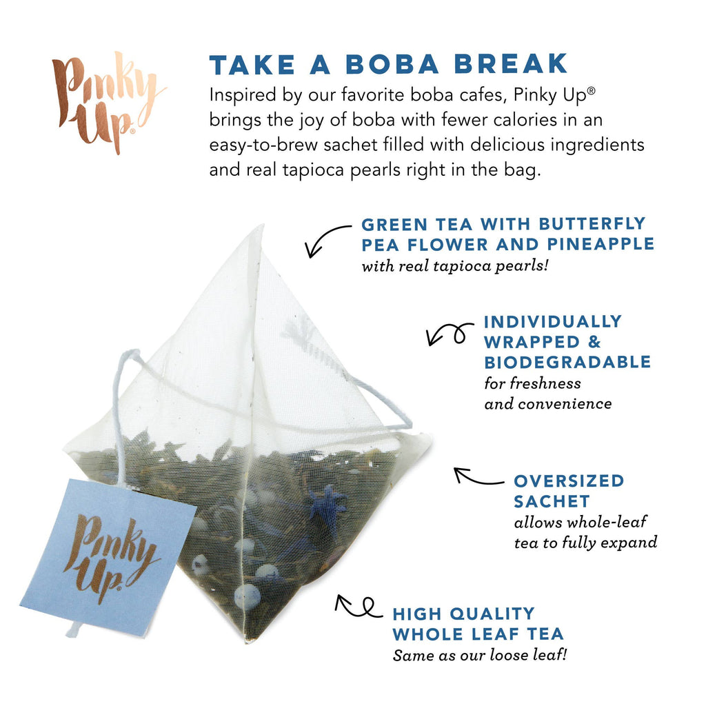 MAKE BUBBLE TEA AT HOME - Our unique whole leaf blend combines pineapple, green tea, white tapioca pearls, butterfly pea flower, monk fruit p
