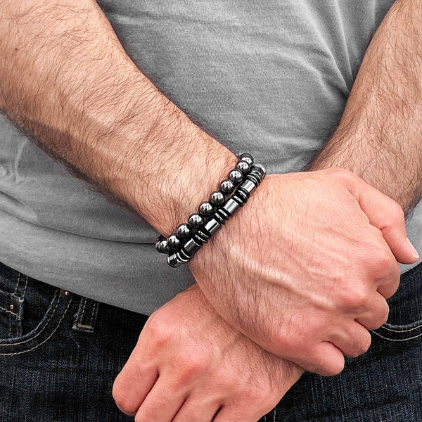 Geometric Magnetic Hematite Bead Stretch Bracelet (8mm)