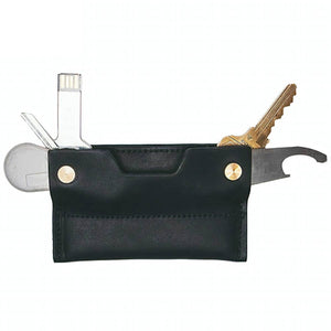 The smart key holder and wallet is a rugged looking piece that any guy would love. Material: genuine leather and alloy. Holds up to 10 credit cards and cash. Up to 6 keys can be securely connected. Includes bottle opener. Dimensions: 4.5" x 3.75" x 1".
