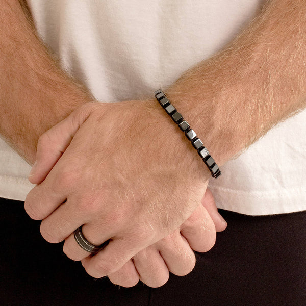 Medium Hematite Cube Stone Adjustable Bracelet - 6mm