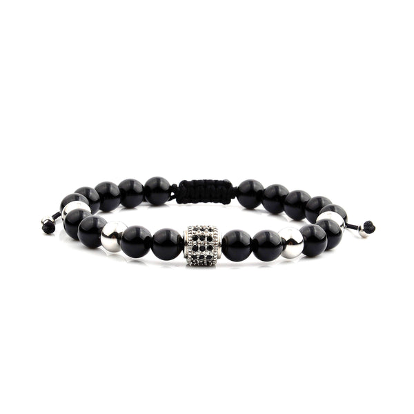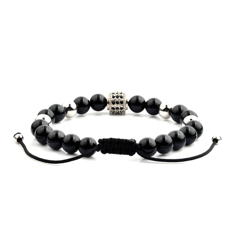 Natural Stone and Cubic Zirconia Adjustable Bracelet: Black