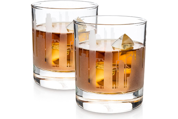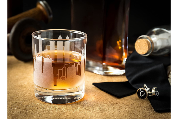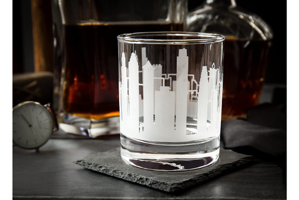SAND ETCHED WHISKEY TUMBLER: Each Greenline Goods rocks whiskey glass was etched by a skilled artisan and features an iconic big city skyline. Flip the glass over to see the city name etched along the bottom! 10 OZ WITH A HEAVY BASE: Premium quality glassware, 100% LEAD FREE, and just the right size. This glass is suitable for any number of cocktail classics. Looks especially classy with an old fashioned, scotch, or full-bodied bourbon. DISHWASHER SAFE & GUARANTEED FOR LIFE