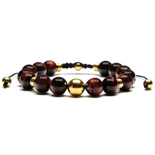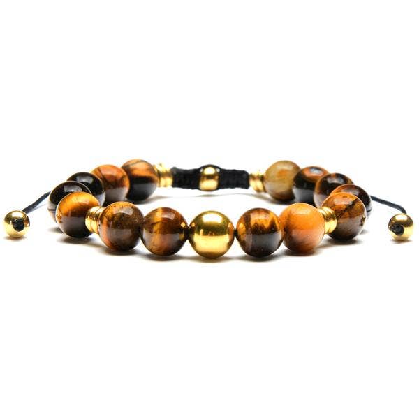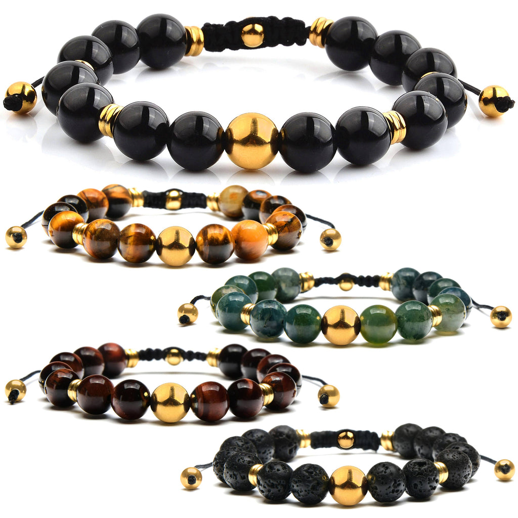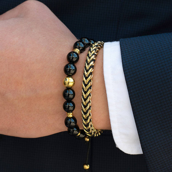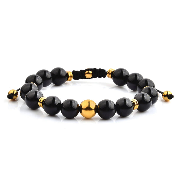 Stone and Gold Plated Beaded Adjustable Bracelet (10mm): Onyx