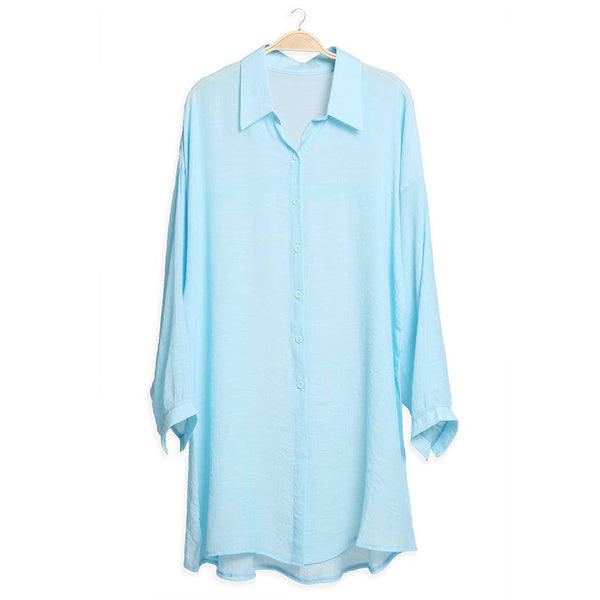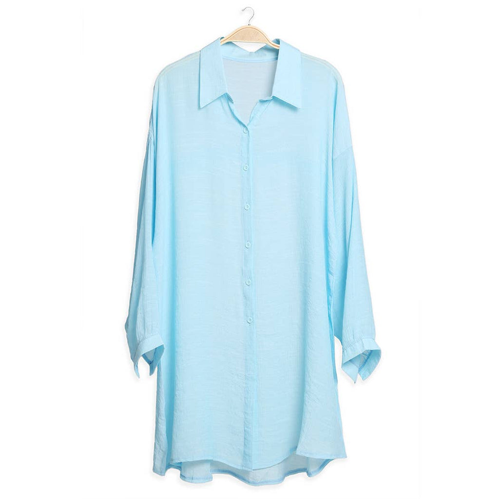 Women's Solid Color Button-Up Shirt Cover Up: One Size / Blue