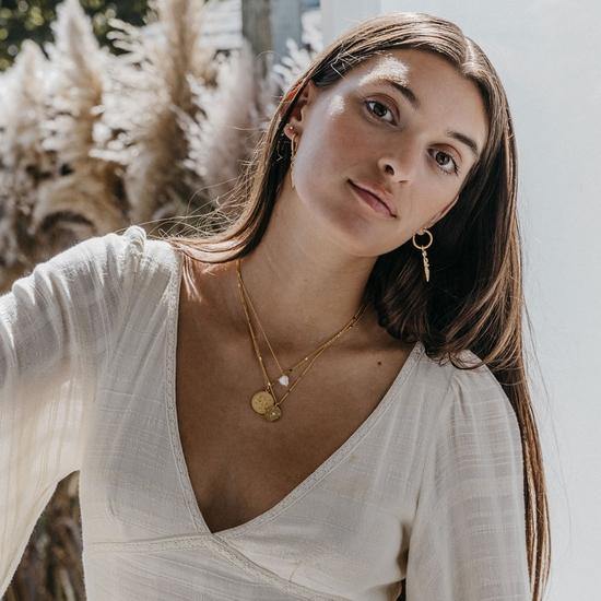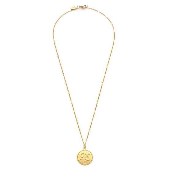 It is written in the stars. This astrological series of medallions features beautiful, original artwork created from vintage tooling and an 18" interesting, sparkly chain. Made of brass with 14k gold plate. Designed and assembled in our Sonoma California studio.